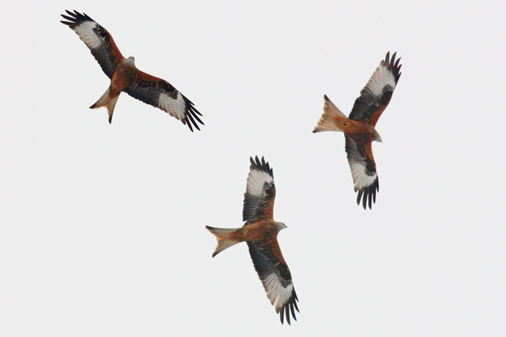 Ein auffälliges Merkmal des Rotmilans sind die sogenannten „Finger“ – das sind die äußersten Schwungfedern, die spitz zulaufen und sich nicht ganz überlappen. Beim Rotmilan sind es meist fünf, beim Schwarzmilan sechs, wobei durch die Mauser einzelne Federn fehlen können. Deutlicher lässt sich der Unterschied an der Musterung der Handschwingen erkennen: Beim Rotmilan ist die Basis reinweiß und die Spitze schwarz, beim Schwarzmilan verläuft die Farbe eher verschwommen von Grau zu Dunkel.